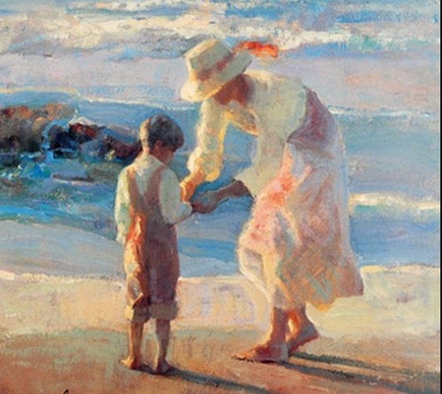 Don Hatfield Playing at the Shore Hand Embellished Limited Edition on Canvas Numbered LXXVIIIC and Hand Signed with Letter of Authenticity. Don Hatfield is an American painter who was born in 1947. Don Hatfield is one of over 100 world renowned artists available through Herndon Fine Art.